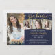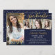 Modern redigerbar marin blå och guld studentfest-inbjudan med 4 foton och kalligrafiskript för elegant guld, typografi accentuerad med guld konetti mot ditt val av bakgrund färg - gå över till en skola färg eller samordna fotofärg för att förbättra bilder. ASSISTANS: Om du vill ha hjälp med designändring/anpassning, överföra designen till en annan produkt eller om du vill samordna produkter kontaktar du designern INNAN ORE ORDERING via Zazzle-Chatta eller makeitaboutyoustore@gmail.com.