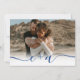 Elegant 4 Foton, modernt skript, blått bröllop Inbjudningar