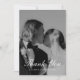 Elegant 4-Photo Black & White Script Wedding Thank You Card. Customize with 4 of your favorite wedding photos, bride and groom names, your wedding date, and personalized thank you message on the back.