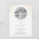 Fira en tidlös kärlekshistoria med denna vackert designade 50-årsjubileumsinbjudan. Med en romantisk stadssiluett under en mjuk, dimmig regnskur och ett par under ett rött paraply fångar denna design magin i en livslång resa tillsammans. Den cirkulära fotoramen är omgiven av ömtåliga bladguldaccentuer, som ger en touch av lyx och elegans – perfekt för ett gyllene jubileum.
