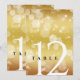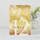 Lägg till sofistikering till 50:e guldårsdagen bröllop firande med detta bord-kort, som innehåller elegant och sexkantig konetti på en guld-bakgrund. Anpassa med bordsnummer. Omvänd visar identisk design. Design © W.H. Sim. Se mer på zazzle.com/expressionsoccasions