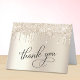 50:e födelsedagsfesten i chicen är ett tackkort som innehåller Tack i kalligrafi i elegant, en guld-faux-bakgrund och droppande guld faux glitter. Anpassa ditt tackmeddelande och namnteckning eller lämna tomt för en handskriven anteckning.