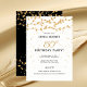 Elegantens 50:e inbjudan till Guld Löv i Födelsedagsfest är designad med löv för mjuk färgad i guld och överensstämmer med Namn- och OSA-informationen. Texten innehåller: Gå med oss till, Namn, 50:e Födelsedagsfesten, Datum och tid, Plats och OSA. Den omvända sidan är designad med mjuka löv i guld färgad och konfetti mot svart bakgrund. Om du vill anpassa dig infogar du bara dina uppgifter i vår enkla mall och ersätter exempeltexten.