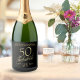 Elegant 50 och Fabulous Ornament 50:e Birthday Sparkling Vin-etikett. 50 och fantastisk text i trendigets gyllene skript och en elegant som dekorerar mot svart bakgrund. Anpassa det med ditt namn och din ålder och gör personlig elegant vin för en födelsedagsfest.