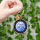 Fira deras 51:a safir-årsdag i bröllop med denna snyggt minnesande nyckelkedja! Elegant med hexagonala konfetti på en safierblå bakgrund lägger till ett minnesvärt drag för detta speciella tillfälle och en extraordinär milstolpe. Anpassa med parets namn, årsdatum och upp till 2 linjer meddelanden. Design © W.H. Sim. Se mer på zazzle.com/expressionsoccasions