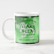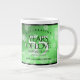 Fira 55:e årsdagen efter bröllop med ett par av dessa snyggt gigantiska kaffe koppar! Elegant med hexagonala konfetti på en frammarsch grönt ger en minnesvärd beröring för detta speciella tillfälle och en extraordinär milstolpe. Anpassa med parets namn, data i giftermål och/eller gratulationer. Omvänd visar identisk design. Design © W.H. Sim, Med reserverade Höger. Se mer på zazzle.com/expressionsoccasions