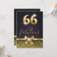 Elegant snyggtsvart och 66th födelsedaginbjudan för guld. Designsärdrag av guld- glitter och guld- sparkly pilbåge på bekläda såväl som guld omkullkastar 66. Tillfoga partyet specificerar på baksidaen.