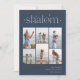 Share cheer with these modern Hanukkah holiday cards featuring 6 of your favorite photos in a grid collage layout. "Shalom" appears at the top in connected lettering adorned with tiny stars. Personalize with your holiday greeting, family name and the year at the lower right.