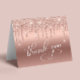 Chicens vikande tackkort för din 70:e födelsedagsfest med "Tack" i ett elegant vitt kalligrafskript, en ro-faux-folie och ro-guld. Anpassa ditt tackmeddelande och namnteckning på insidan eller lämna tomt om du vill ha en handskriven anteckning.
