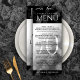 Lägg till sofistikering till 70:e platinumårsdagen bröllop firande med den här middagsmenyn, som innehåller elegant och hexagonala konfetti på platinumfolie och svarta bakgrunder. Anpassa med par namn, data i giftermål, platsinformation, menyalternativ och gratulationsmeddelanden.. Design © W.H. Sim. Se mer på zazzle.com/expressionsoccasions