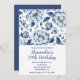 Elegant 75:e födelsedagsinbjudningar Blommigt Vintage Blå rustik vattenfärg