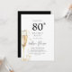 Detta är en modern och elegant inbjudan till 80-årsfirande. Med hjälp av en minimalistisk design med ett champagneglas kan du enkelt redigera texten efter behov med hjälp av den medföljande mallen och fira denna milstolpe på ett elegant sätt.