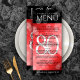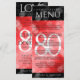 Lägg till sofistikering till 80:e ruby bröllop-årsdagen firande med den här middagsmenyn, som innehåller elegant och sexkantig konetti på ruby-röd och svart bakgrund. Anpassa med parets namn, data i giftermål, platsinformation, menyalternativ och gratulationsmeddelanden. Design © W.H. Sim. Se mer på zazzle.com/expressionsoccasions