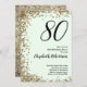 Elegant 80th Birthday Invitation Green Gold Sequin Inbjudningar