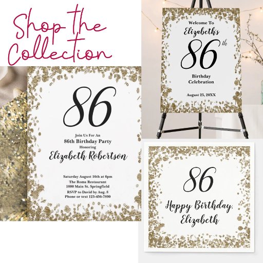 86th Birthday Gold Glitter Glam CelebrationDesignad av Kara Buntin