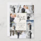 Visa tacksamhet med det här bröllop-tackkortet för elegant 8-foto. Med ett modernt "tack"-skript och en kollage-layout för anpassaden är det perfekten att visa dina favoritstunder i bröllop. Anpassa text, foton och bakgrundsbilder till färg så att de stämmer överens med bröllop-temat. Designat genom fatatinering kombinerar detta kort elegans utan tidsgräns med contemporaryns utformning. —