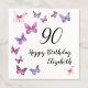 Denna vackra och eleganta 90-årsdag cocktailservett är perfekt för en trevlig fest och sätter en festlig ton. De rosa och lila fjärilarna lägger till en feminin touch till en milstolpe födelsedagsfirande. Anpassa designen med ett namn för att göra den personlig.