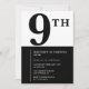 Elegant 9:e födelsedagsinbjudan Black Chic Modern Inbjudningar