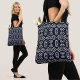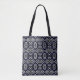 En geometrisk abstrakt utan maskor mönster med en kombination av marin blå och vit snyggt. Perfekt för att tillföra Tote-väskan en aning elegans och modern sofistikering.