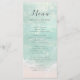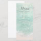 Romantiska kustteman med bröllop-menyer har en vacker turkos abstrakt med vattenfärgad gnistrande havsvåg och strandbakgrund, överst med snyggt och information om typsnittshändelser för elegant, modern och enkel, underbar för sandstrasbröllop, tropiskt destinationsbröllop, kusthav, temed bröllop. Visa alla matchande delar i samlingen.