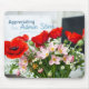 Sophisticated soft photographic style featuring a beautiful arrangement of red poppies and delicate spring blooms on a professional workspace, paired with the subtle quote "Appreciating Our Admin Stars." Dewy details and gentle tones align with Pinterest board aesthetics for timeless admin appreciation. A graceful way to honor administrative professionals' dedication—perfect for elegant cards, prints, or office decor that conveys deep gratitude.