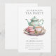 Elegant Afternoon Tea Party Invitation. Featuring elegant typography in charcoal and black text with a beautiful watercolor style royal pale teal teapot with pale pastel blush pink floral pattern, teacup in palest pink with gold accents, and pink macaroons. Back is shown in solid white. Gorgeous invitation for tea parties, garden parties, great for a variety of occasions, excellent for personal, club, or business celebrations alike. All text, fonts, and colors are customizable (artwork colors are not customizable, with the exception of filter options, however the artwork can be replaced with your own). We invite you to visit our Zazzle store, Austen & Grace, for matching products and more. Please contact us if you require any assistance.