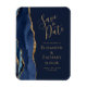 Eleganten i spara datum magneter har en marin blå vattenfärg som ruttnar gräns med faux guld glitter. Anpassa enkelt guld-färgad-texten på en marin blå bakgrund.