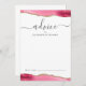 This elegant design features top and bottom borders of pink watercolor agate trimmed with gold faux glitter. The word "advice" appears in handwriting calligraphy script with flourishes at the beginning and end. Personalize with the names of the newlyweds in charcoal gray copperplate font. A line at the bottom provides space for guests to sign their advice and wishes for the couple.