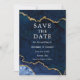 Modern elegant akvarell blå och guld marmor agat geod Spara datum-kort
