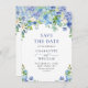 Elegant akvarell blå hortensia blomsterbröllop spara datumet
