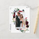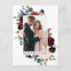 Elegant akvarell Burgunder Rosa Blommor och Grönska Brud och Brudgum Kärlek och Tack Bröllopsfoto Tackkort innehåller burgunder och rosa rosor, blå blommor, botanisk grönska och eukalyptusblad.