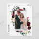 Elegant akvarell burgunder rosa blommor och grönska brud och brudgum kärlek och tack bröllopsfoto tack vykort inkluderar burgunder och rosa rosor, blå blommor, botanisk grönska och eukalyptusblad.