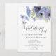 Blå Blommig Bröllopsinbjudan med Elegant Skrift Dammtorblue, blåklintsblå, marinblå Akvarell Vår & Sommar Trädgårdsbröllopsinbjudan