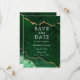 Modern elegant akvarell smaragdgrön och guld marmor agat geod Spara datum-kort