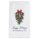 Modern Elegant Kalligrafi Bläck Skript Akvarell Tall Vinter Grönska med Burgunderröd Band Böjd Juldekorationer, Tallkottar och Julholberry Blommor Glad Jul Presentpåse