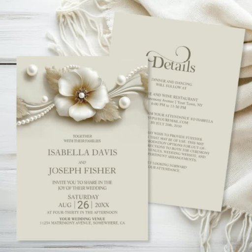 Elegant All in One Flower and Pearls Wedding Inbjudningar