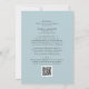 Elegant allt i en Dusty Blue Eucalyptus bröllopsinbjudan... Vår unika "Allt-i-ett" botaniska bröllopsinbjudan har elegant vattenfärgen eukalyptus grenar i skuggor av dammiga blått som gränsar till din inbjudningstext på en samordnande ljusdammig blå bakgrund. Baksidan av inbjudan innehåller all information som du normalt skulle se på separata kort i bröllop-paketet. Den här moderna bröllopsinbjudan från stil fram och tillbaka var designad för att vara både elegants- och budgetmedveten.. för att inte tala om tidsbesparing. På baksidan finns ett exempel på en QR-bildmall som du kan ersätta med din egen kod (eller ta bort om du inte tänker använda använda ett... - glöm inte att ta bort texten som hänvisar till QR-kodinformationen). All exempeltext kan enkelt revideras med egen information om anpassningsmallen.