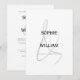 En modernt, minimalistisk bröllopsinbjudan i stil med stiliserad elegant. Med bröllop på kortets baksida.