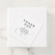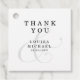 Elegant bröllop favör -taggar med grått-skriptampersand i grått överlagt med namn och bröllop-datum i svart serif-teckensnitt och den redigerbara rubrikraden - "TACK"