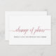 Ibland måste bröllop skjutas upp. Be dina gäster att ändra ditt bröllop-datum med den här eleganten som visar ord "ändrad planering" i den moderna manusatypgrafin för rosa i ro guld på framsidan tillsammans med ditt budskap och namn på baksidan.