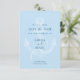Elegant Save the Date-kort med ett stort ankare på bakgrunden i en mjuk blå nyans. Ankarillustrationen har en vintage-känsla medan den rena designen är modern. Detta kort utan foto är perfekt för ett strandbröllop eller destinationbröllop. Denna klassiska design sätter tonen för en unik och minnesvärd tillställning.