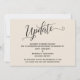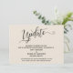 Den här svitens distinktion beror på det avancerade, roterande skriptteckensnitt som används för accentfraser. Om du behöver meddela dina gäster att bröllop har ställts in, kan du välja en elegant. I det här biet används calligrafteckensnittet för att skapa ett grafikobjekt som skildrar "Uppdatera" från ord. Använda mallen fält om du vill lägga till dina personuppgifter och göra den till din egen. Bakgrunden kan ändras till valfri färg. Var god kontakta alla speciella förfrågningar eller anpassa hjälpen. 98 //