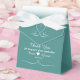 Elegant Anpassningsbar Teal Bröllop Heart Tack Favorbox. Princess stil formger med kalligrafhjärtan och konst. namnen av Bride och Groom visas på framsidan, tillsammans med datum. Tackkortet kan också vara personlig. Du kan enkelt ändra bakgrunden till färg genom att klicka på knappen "Anpassa".