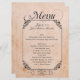 För bröllopmottagande för vintage som sjaskiga menyer för bord göras i en antik parchmentlook, med diagram av ett längst ner svart dekorativt arbete för för ramtextområde och rulla. Menyn i den grafiska svartfinare skrivar text dekorerar det bästa av menyn. Alla textinsida det inramade området är klar att personifiera för ditt bröllopmottagande.