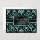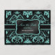 Elegant Aqua Blå och Svart Damask Spara Datum Meddelande Vykort