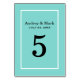Varje kort för bordsnummer måste anpassas genom att anpassa det "och läggas till individuellt i kundvagnen". Tvåsidig kortdesign med bröllop monogram har en chic och en sofistikerad design i akvariet/bassäng/gardinens äggblå, svarta och vita färg.