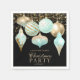 Den här elegant julfesten napkin har vackra julprydnader i aqua och guld, med guld-sträng i ljus på svart bakgrund. Du kan enkelt ändra texten genom att klicka på "Anpassa". Perfekt för dessa julfester.