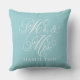 Elegant Aqua Mr och Mrs Script Anpassad Monogram Kudde