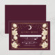 Fånga tidlös elegans med den här kelestialinspirerade Art nouveau-OSAN! Med en strålande guldbåge, delikata vita blommor och skuggande stjärnor mot en kranbärsbakgrund anger den här designen tonen för ett sofistikerat firande. Perfekt för bröllop, galas och milstolpar! Observera att guld på den här produkten INTE är äkta folie, utan tryckt platt.