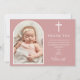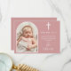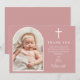 En elegant valv och signatur skript foto dop eller dopceremoni tackkort. Personifiera med ditt speciella foto och tackmeddelande i chic vit bokstav på en dammig rosa bakgrund. Designad av Thisisnotme